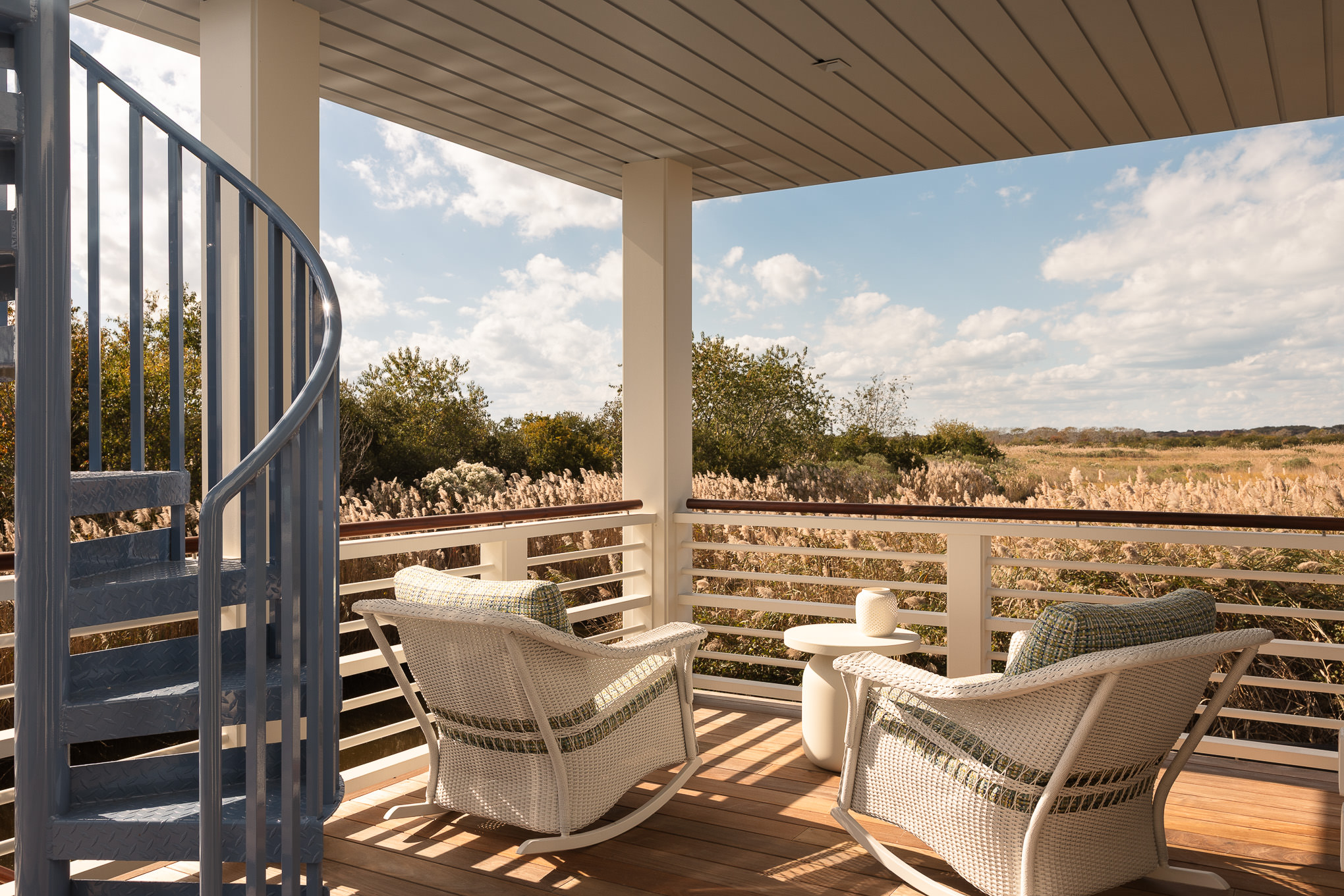outdoor sitting area with a sunset view in a custom home in Cape May, NJ