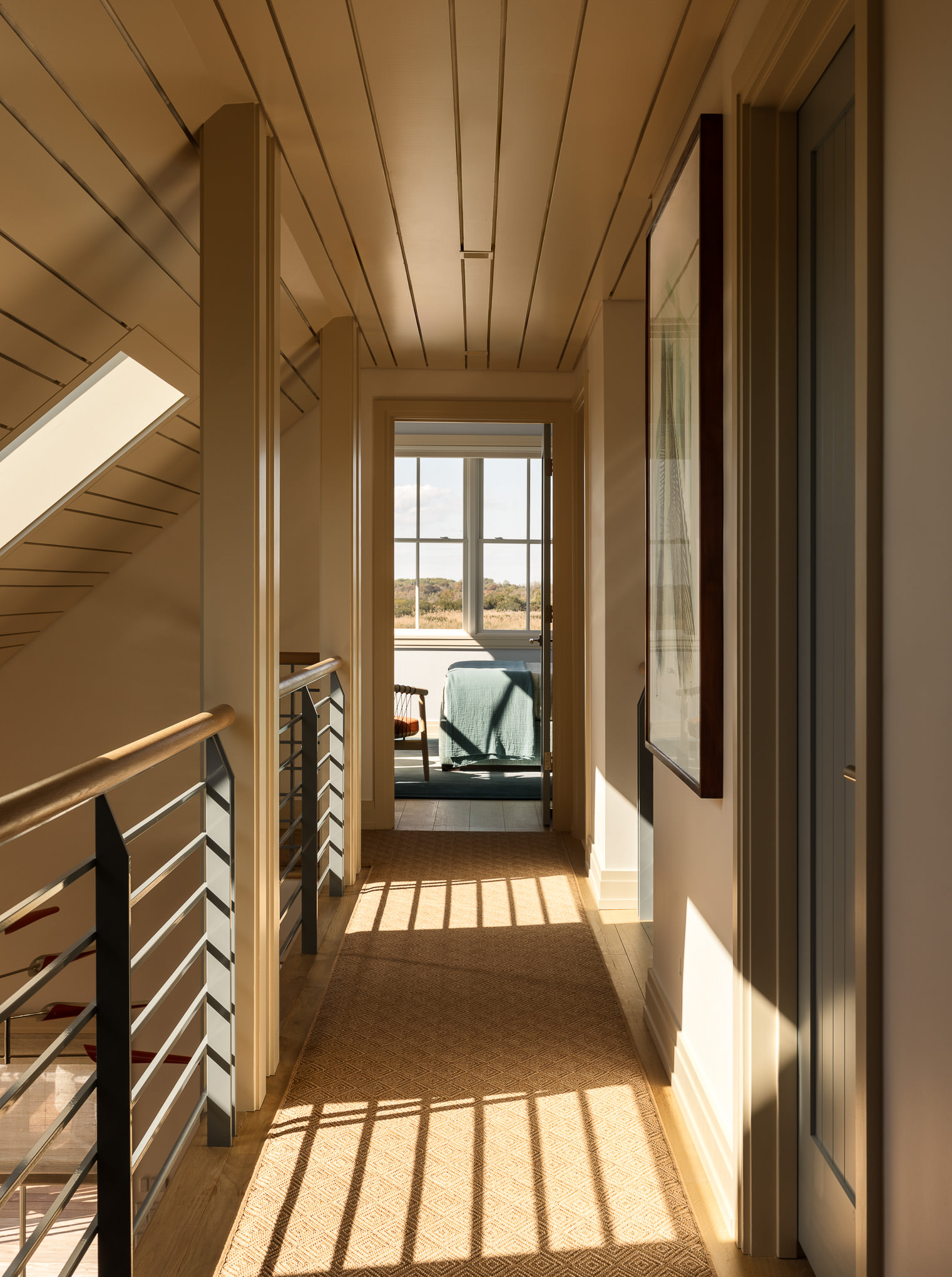 Interior design of a hallway with artwork in a Cape May, NJ home