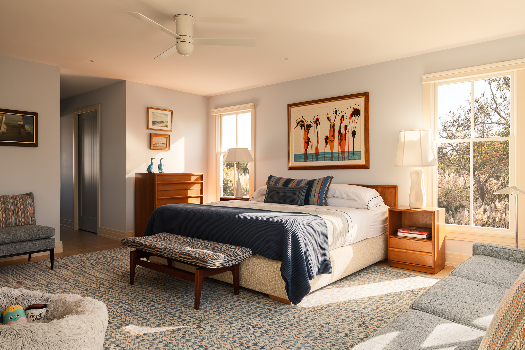 Interior design of a bedroom with artwork in a Cape May, NJ home